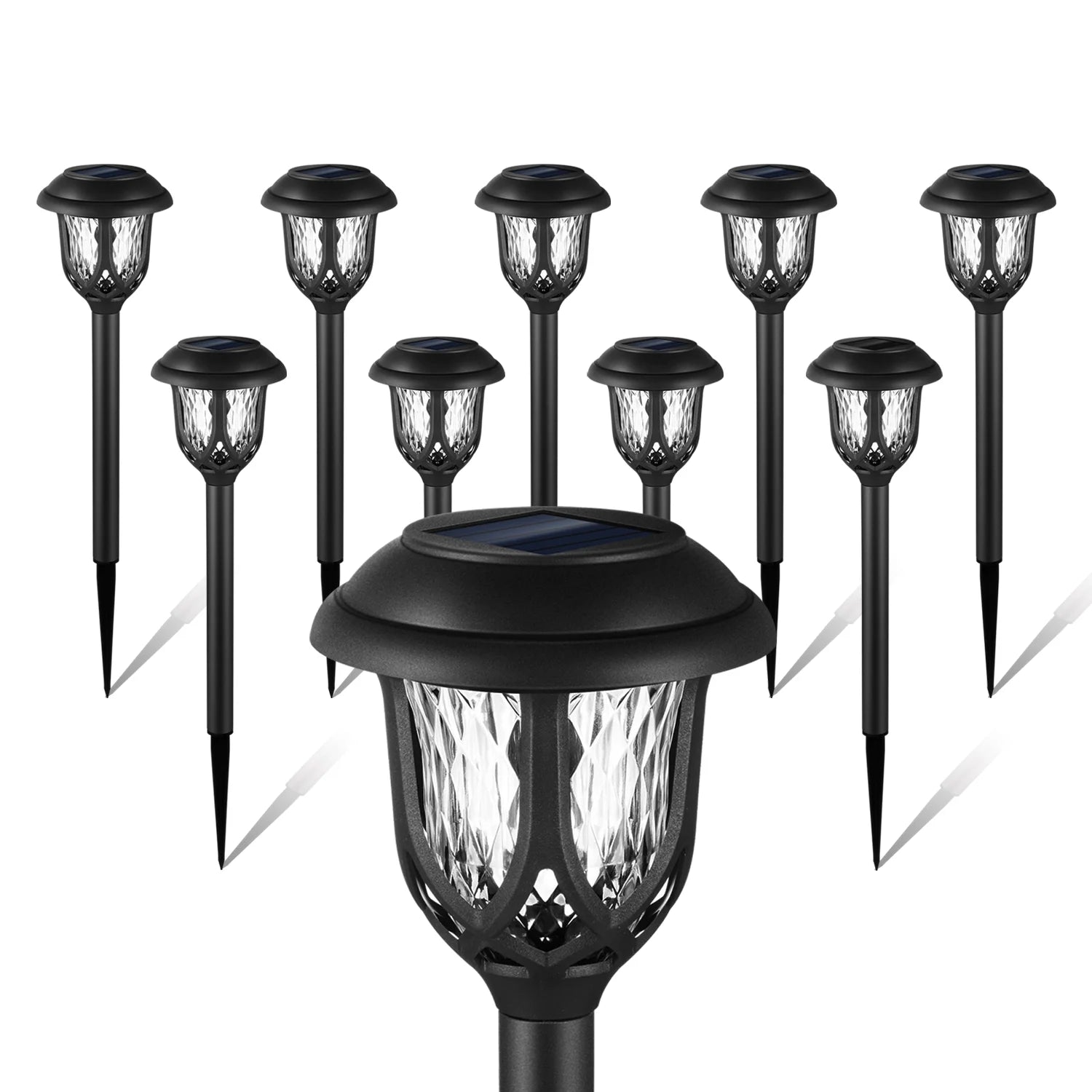 10 Pack Solar Lights Outdoor Decorative, Solar Pathway Lights Outdoor, Solar Powered Garden Yard Lights for Walkway Sidewalk Driveway. (Matte Black, Cool White)