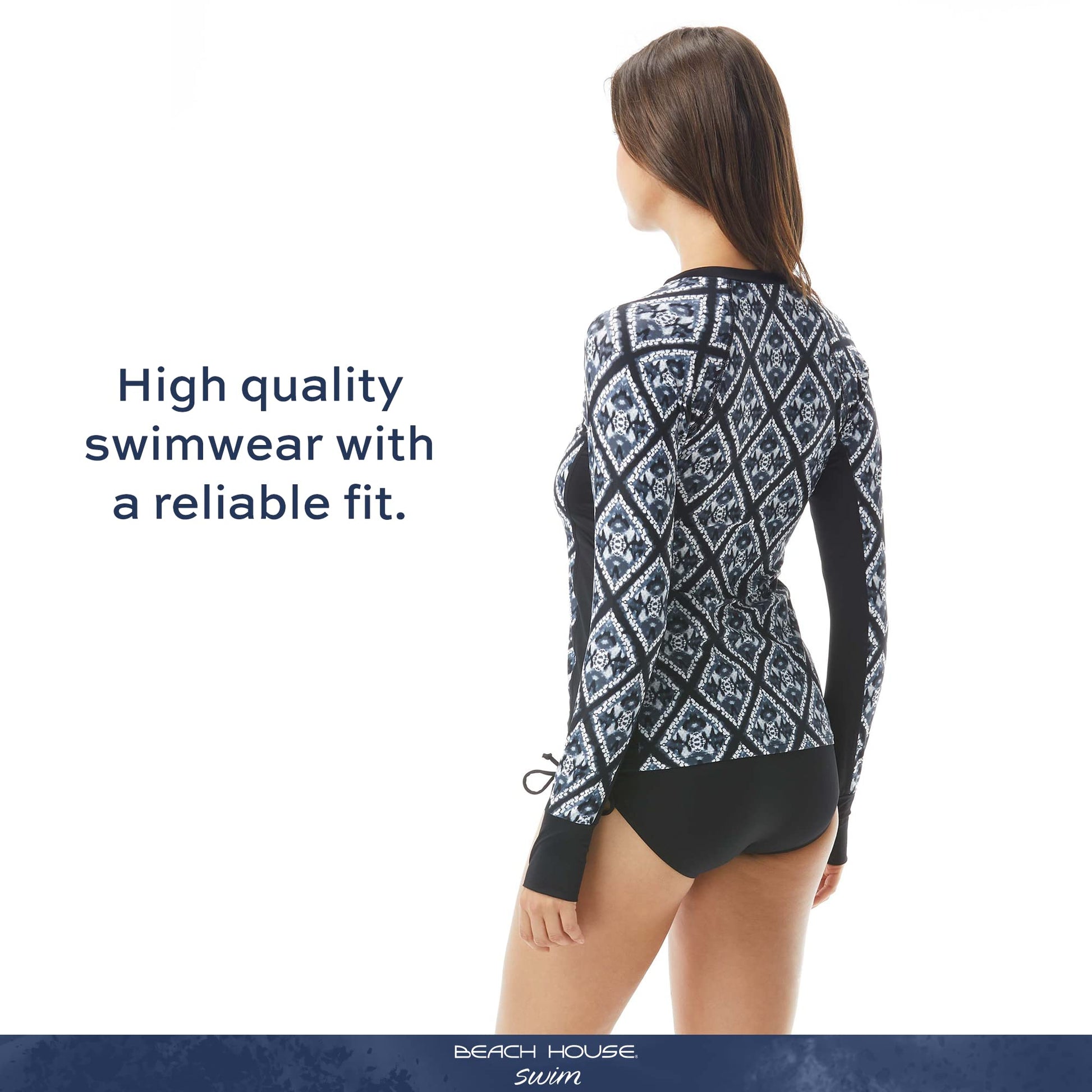 - BECAUSE YOU DESERVE TO BE BOTH COMFY AND CHIC — Beach House swimwear for women is designed with high-end fabrics that bend with you for extra comfort, easy fit and shape retention. The soft touch comfort fabric with lycra has a four way stretch because you should feel as good as you look.