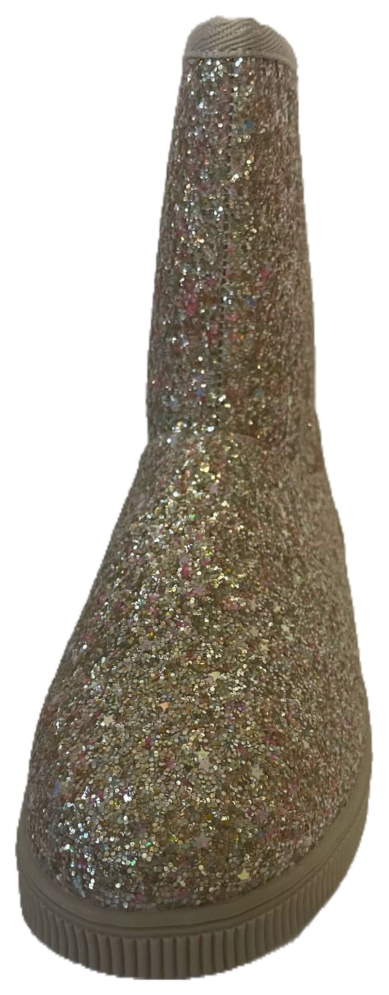 · Upper (PU Faux Leather with Metallic Finish): ~55% Polyurethane (PU)