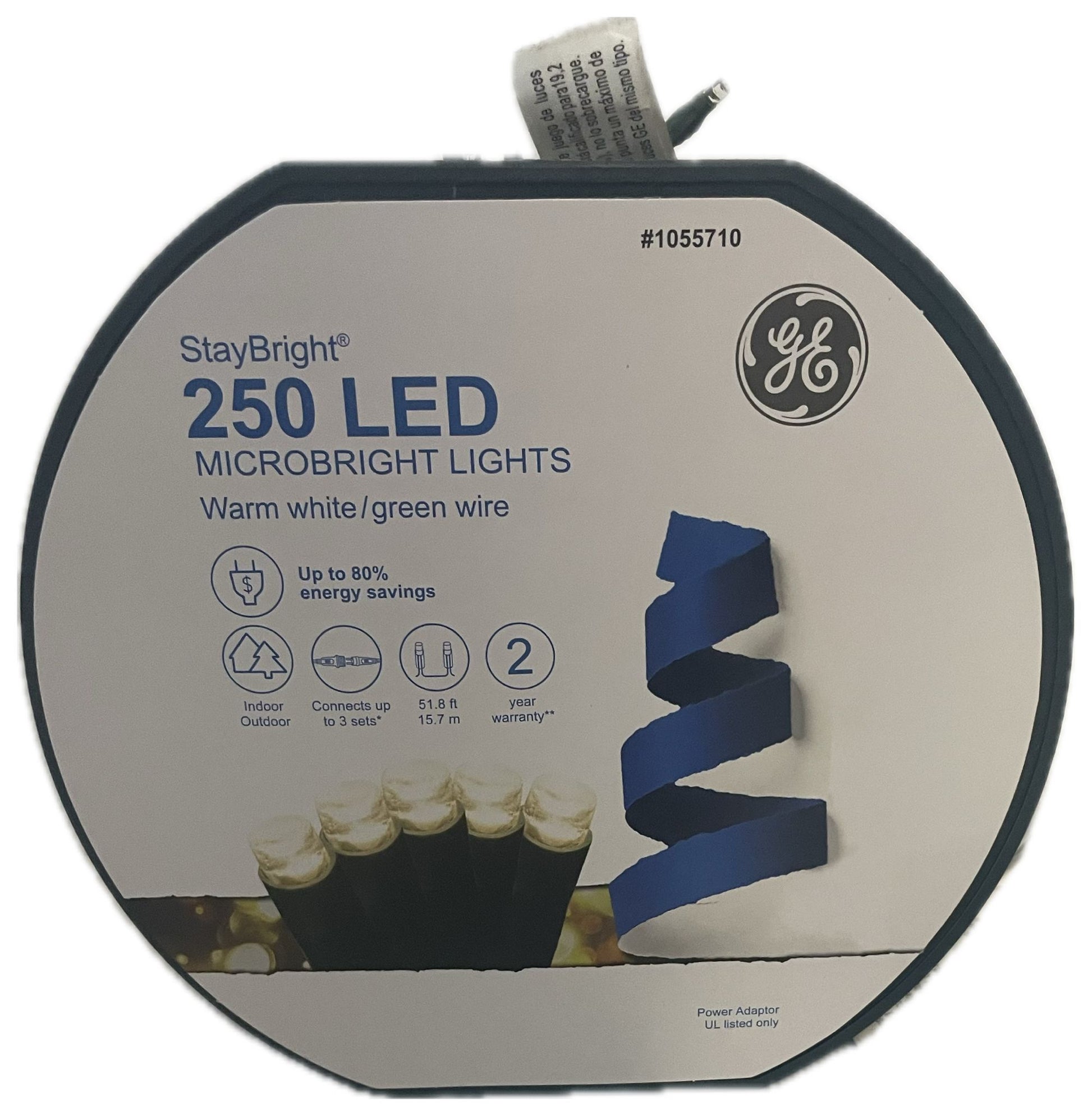 Tags: Ge stay bright Christmas lights, 250 led string lights, warm white holiday lights, indoor outdoor Christmas lights, plug-in Christmas lights, energy efficient holiday lighting, Ge holiday decor, long string lights, connectable led string lights