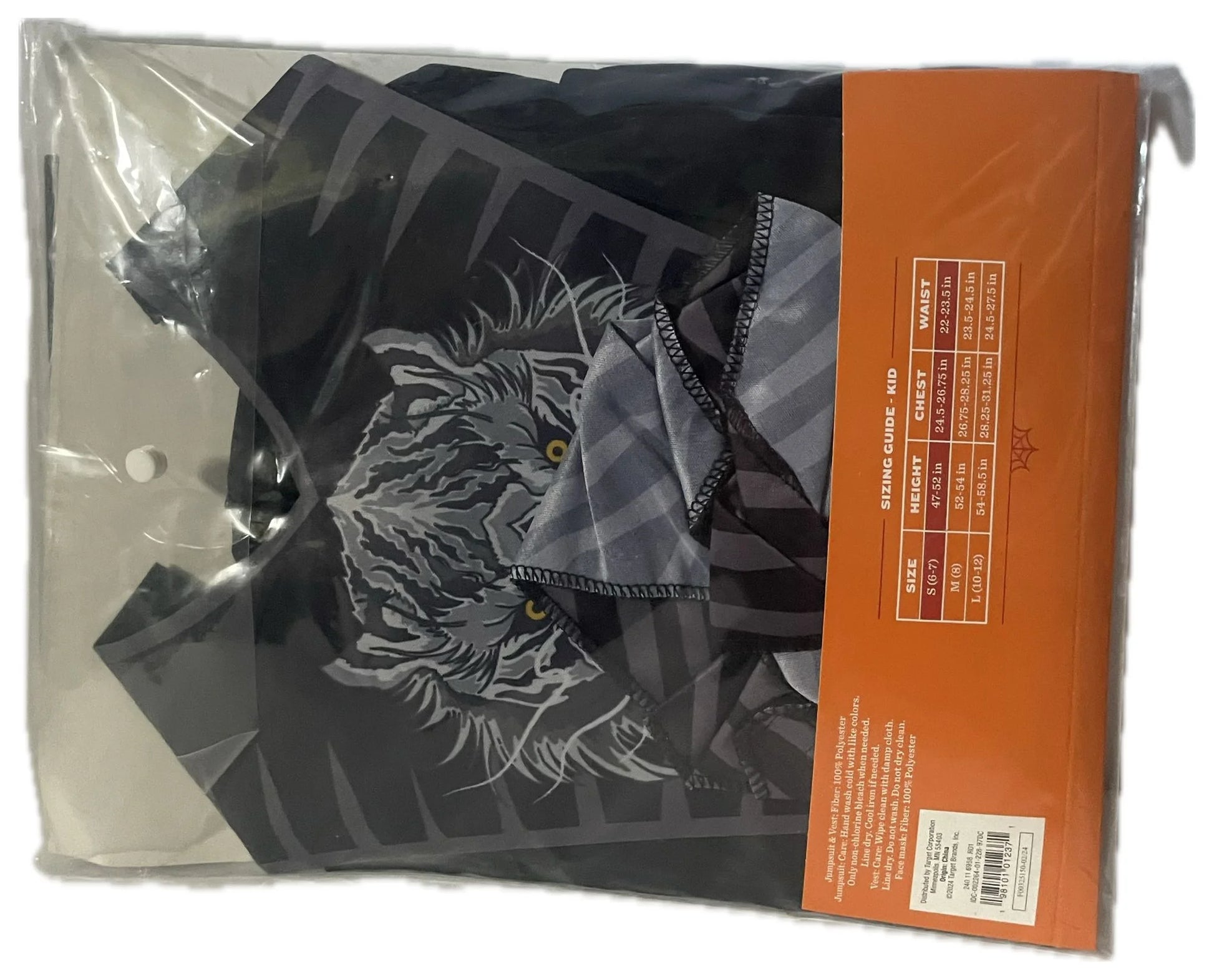Unleash your child's inner Tiger Warrior with this stylish and comfortable Halloween costume from Hyde and Eek! Boutique. The set includes a black and gray jumpsuit, a matching face mask, and a vest with a sash, all made from lightweight and durable polyester. The outfit features a black hooded jumpsuit with purple tiger-print accents and a vest adorned with a white tiger head print, perfect for imaginative play or trick-or-treating. With easy hook-and-loop closures, this costume is a breeze to put on and take off, ensuring a hassle-free Halloween experience for your little one.