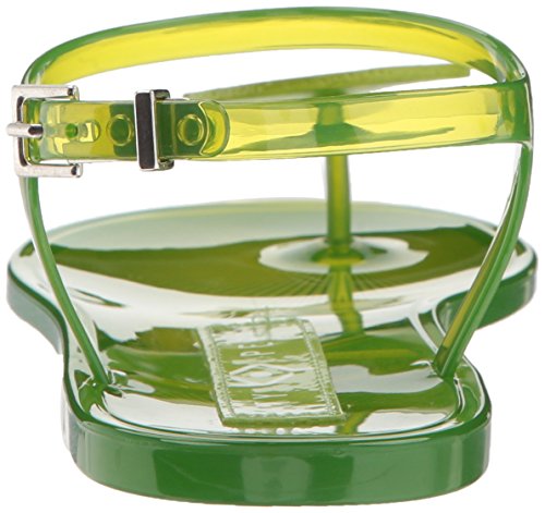 - Flexible, PVC sole with adjustable buckle ankle closure. Toe thong with novelty lime detailing