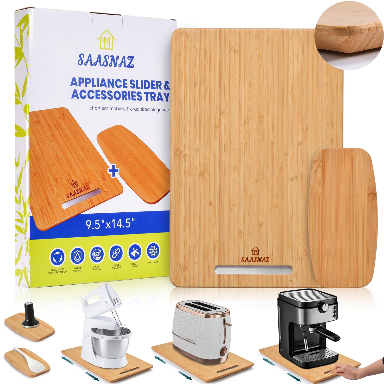- ✅ Premium Sustainable Material - The appliance slider tray is made of high-quality bamboo with a smooth surface and water-resistant treatment. The environmentally friendly bamboo offers an elegant look to complement your kitchen appliances. This pull out coffee maker tray ensures longevity and sustainability