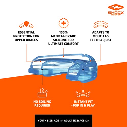 Shock Doctor Double Braces Mouth Guard. Upper and Lower Teeth Protection. Mouthguard No Boil / Instant Fit. For Youth, Teenager, Kids and Adults. Mouth Piece OSFA